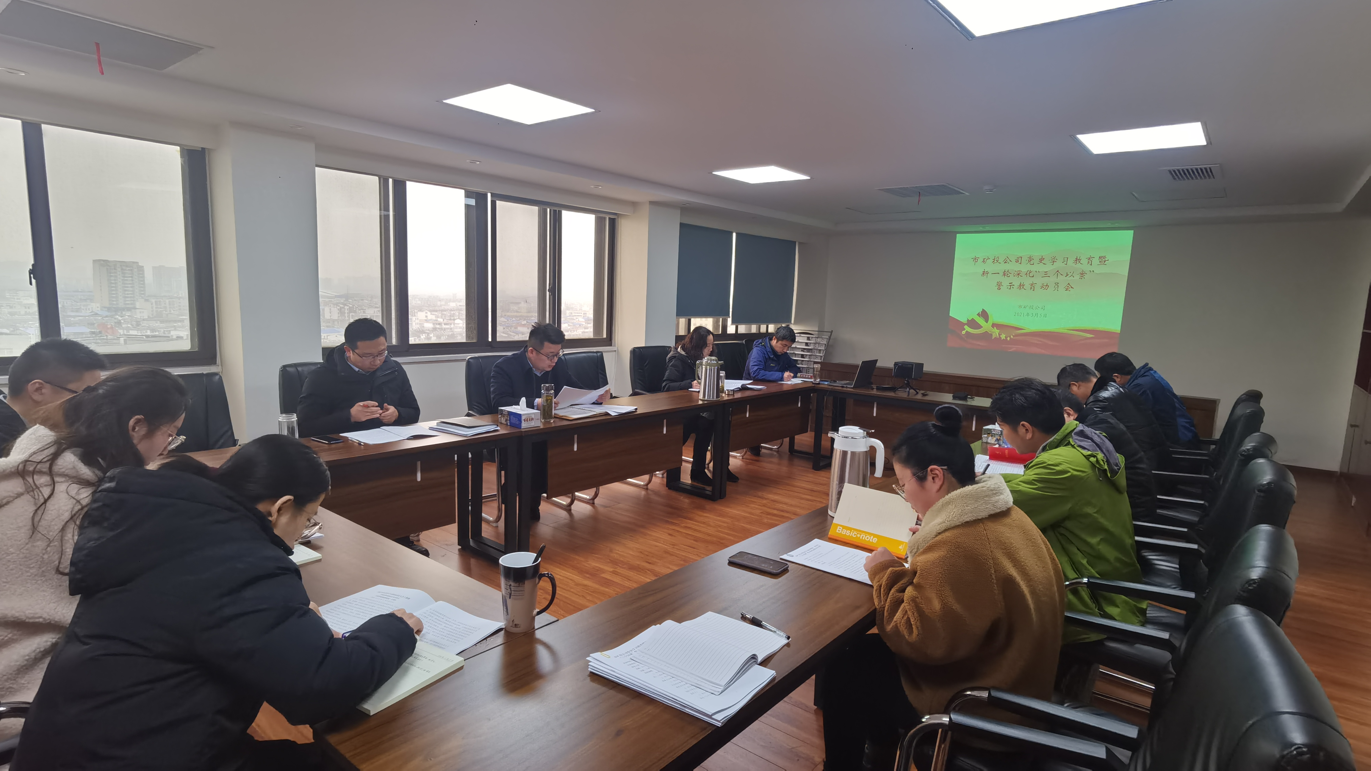 3月5日下午,市礦投公司召開黨史學習教育暨新一輪深化“三個以案”警示教育動員會,集中學習習近平總書記在黨史學習教育動員大會上的重要講話精神,以及省委黨史學習教育動員大會、滁州市黨史學習教育、中央巡視安徽省反饋意見整改暨新一輪深化“三個以案”警示教育動員部署大會精神。黨委書記鄭冬冬主持會議并作動員講話,公司全體黨員參加會議。
