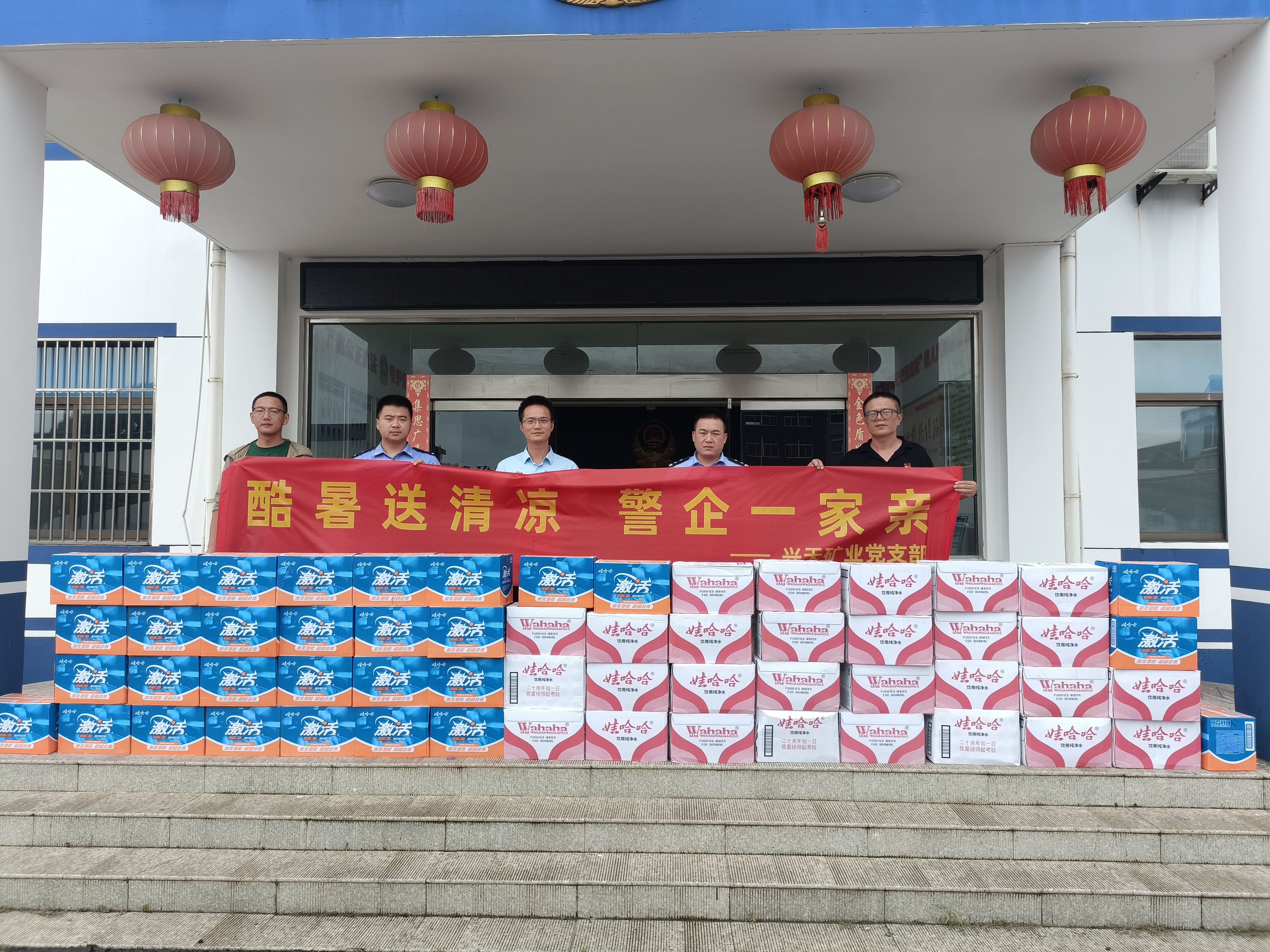 7月26日,興天礦業(yè)黨支部赴金集鎮(zhèn)派出所開(kāi)展“夏送清涼”慰問(wèn)活動(dòng),為民警送去防暑降溫物品。