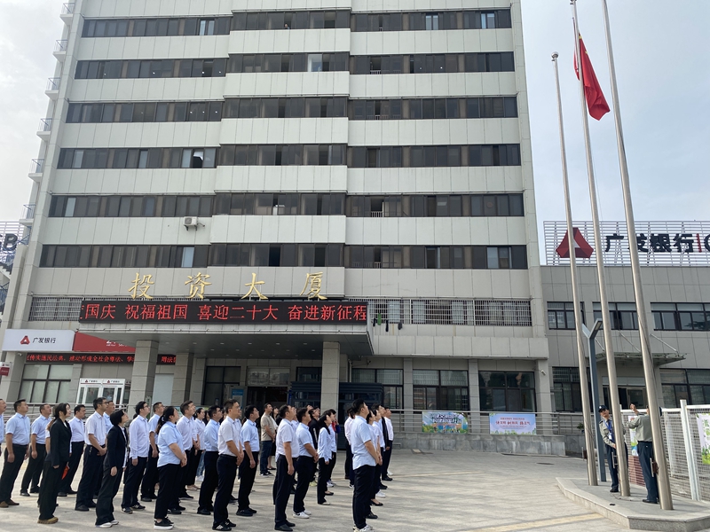 同升國(guó)旗、同唱國(guó)歌。9月30日上午,市礦投集團(tuán)聯(lián)合市文旅集團(tuán)、市揚(yáng)子工投集團(tuán)、市擔(dān)保集團(tuán)在投資大廈舉行升旗儀式,全體人員同唱國(guó)歌,抒發(fā)愛國(guó)情懷,表達(dá)對(duì)祖國(guó)的美好祝福。