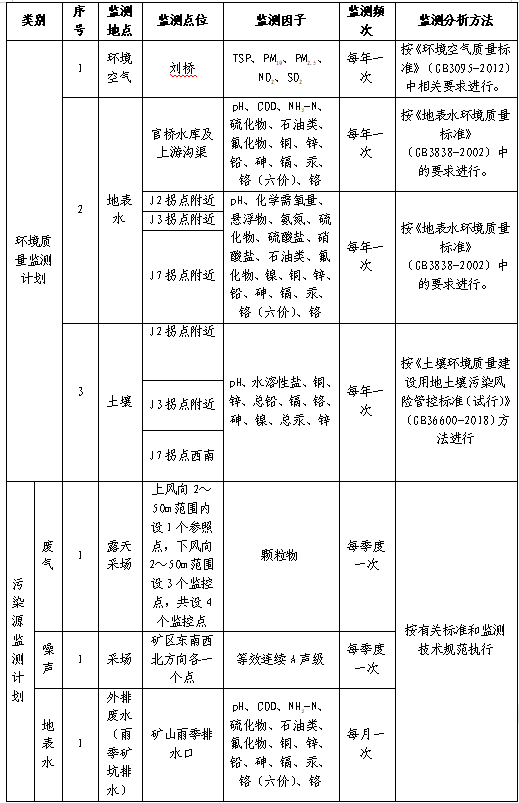 (6)招標范圍及內容:對興天礦業(yè)諭興礦進行環(huán)境監(jiān)測和檢測,包括但不限于土壤、地下水、廢水、廢氣、噪聲等污染源進行監(jiān)測和檢測,每月出具監(jiān)測和檢測報告。監(jiān)測和檢測報告需滿足各級主管單位、國家法律法規(guī)、行業(yè)檢測標準、《滁州市興天礦業(yè)有限公司安徽省天長市諭興地區(qū)建筑用玄武巖礦年產(chǎn) 800 萬噸露天采礦項目環(huán)境影響報告表》中所涉及范圍等要求,保證審批順利通過。