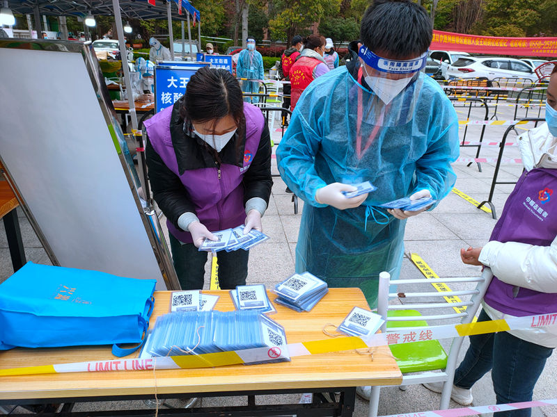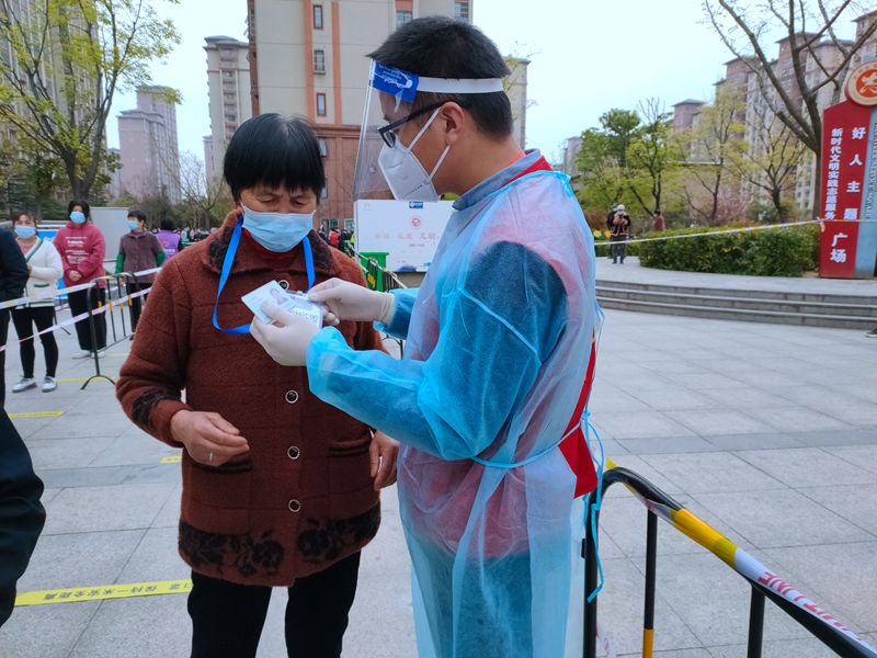 連續(xù)3天的志愿服務(wù)后,為進(jìn)一步優(yōu)化方式、提升效率,志愿者們利用1天短暫休息時(shí)間,收集所有手機(jī)中錄入形成的核酸檢測碼并分別打印制作成胸牌,于翌日分發(fā)至每位老人手中,有效減少了老人等待時(shí)間較長、人員易聚集等現(xiàn)象,從源頭上解決問題,讓“綠色通道”更加暢通,讓參加核酸檢測的老人體會(huì)到更加貼心、更高效率的志愿服務(wù)。