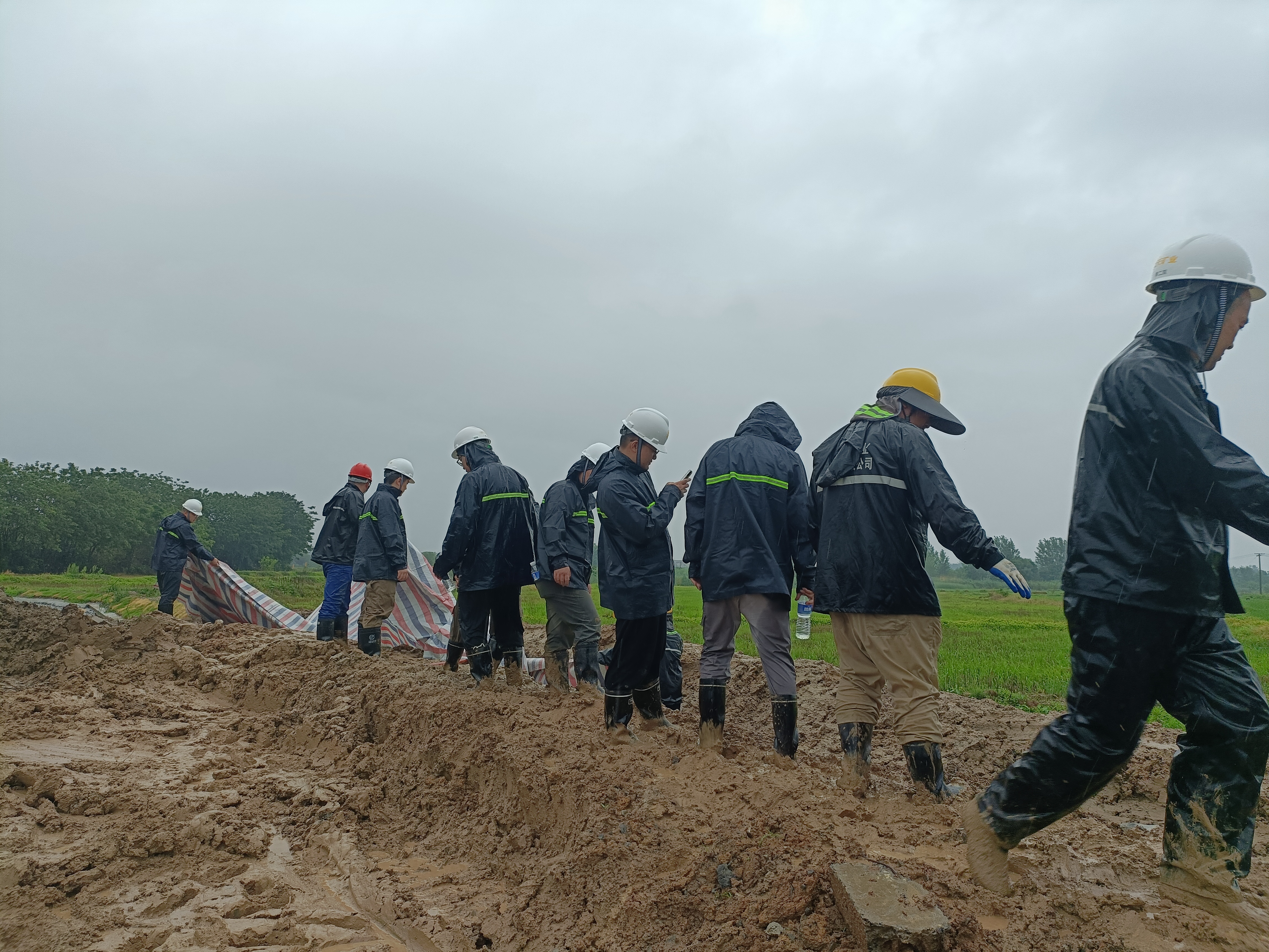 搶險(xiǎn)現(xiàn)場,黨員干部帶頭扛起沙袋,跳入泥水中加固堤壩。由于河道水位上漲較快,突擊隊(duì)員手持鐵鍬開挖臨時(shí)導(dǎo)流渠,將洪水安全引入下游官橋水庫。晝夜風(fēng)雨里泥水滿身,抗洪搶險(xiǎn)中責(zé)任在肩,沙袋和鐵鍬磨破了隊(duì)員們的雙手,卻磨不滅他們的意志,經(jīng)過兩天連續(xù)作戰(zhàn),最終成功排除險(xiǎn)情。